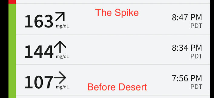 (1) Morning Spike: I noticed that my glucose spiked right at the time I was waking up. It was below 90 most of the time while I was sleeping but it picked up in the morning without me even eating. I was worried for a moment that I was pre-diabetic. However, on Googling, I found that this is completely normal. This is the body getting ready for the day by increasing your cortisol and pumping your blood sugar.